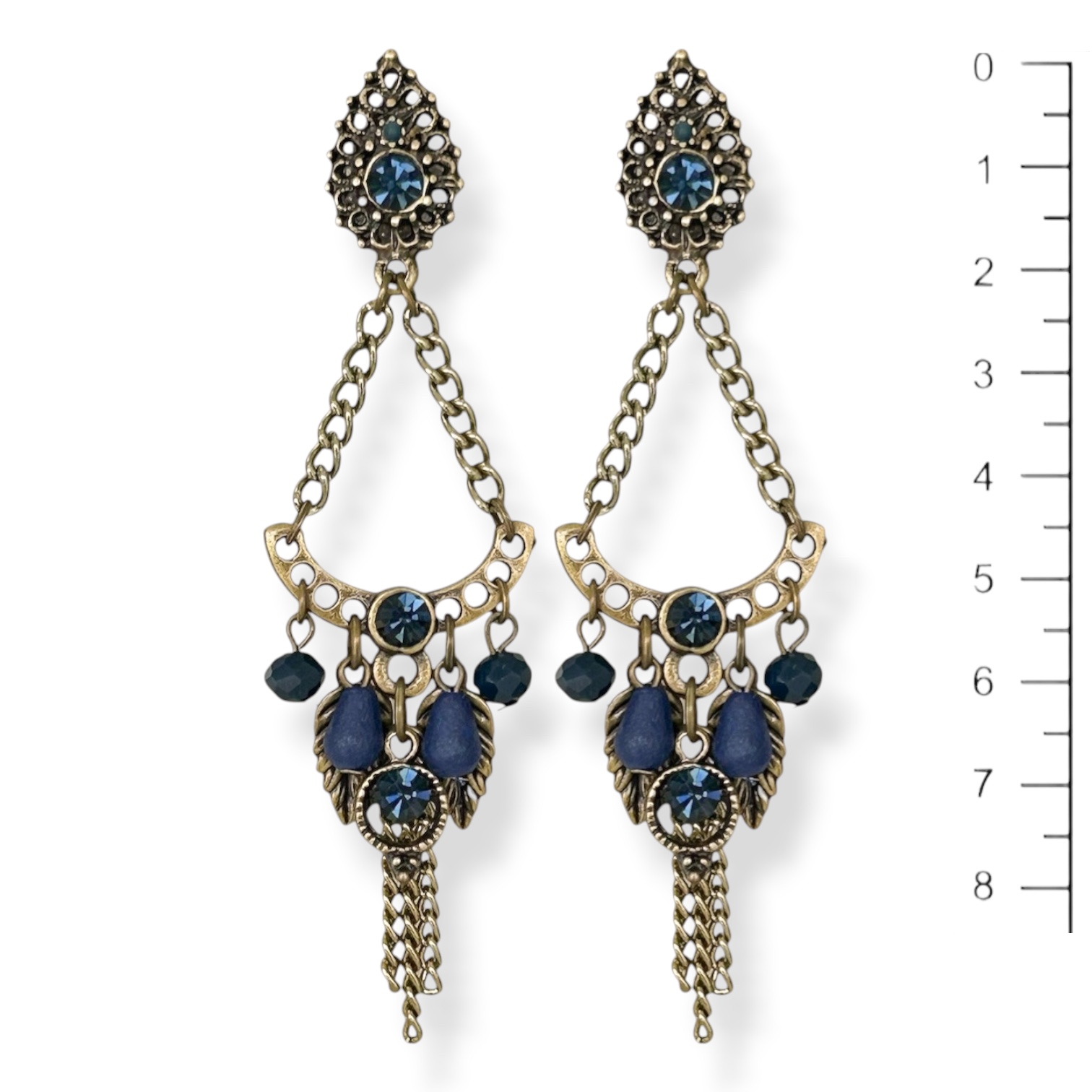 Brinco arco c/ correntes, folhinhas e ptos de luz azul marinho - 12825