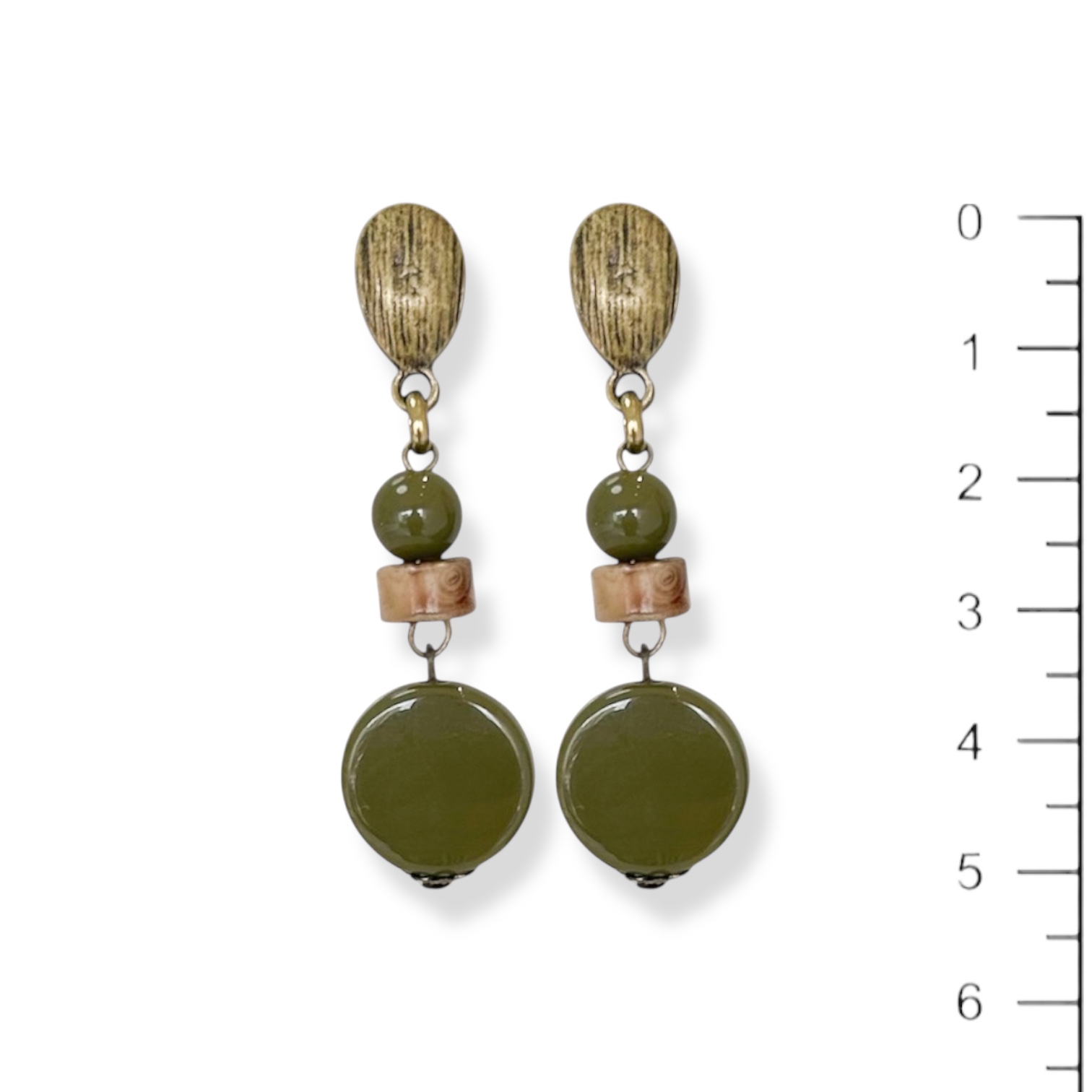 Brinco bola, disco e chapinha de resina verde oliva - 12821