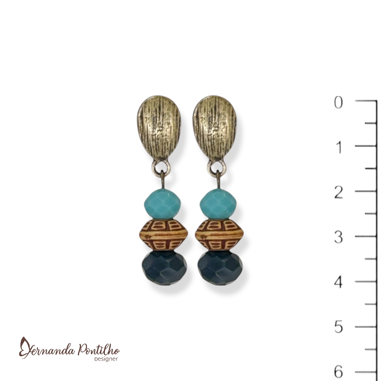 12628 Brinco c/ cristais e entremeios - marinho, turquesa e caramelo