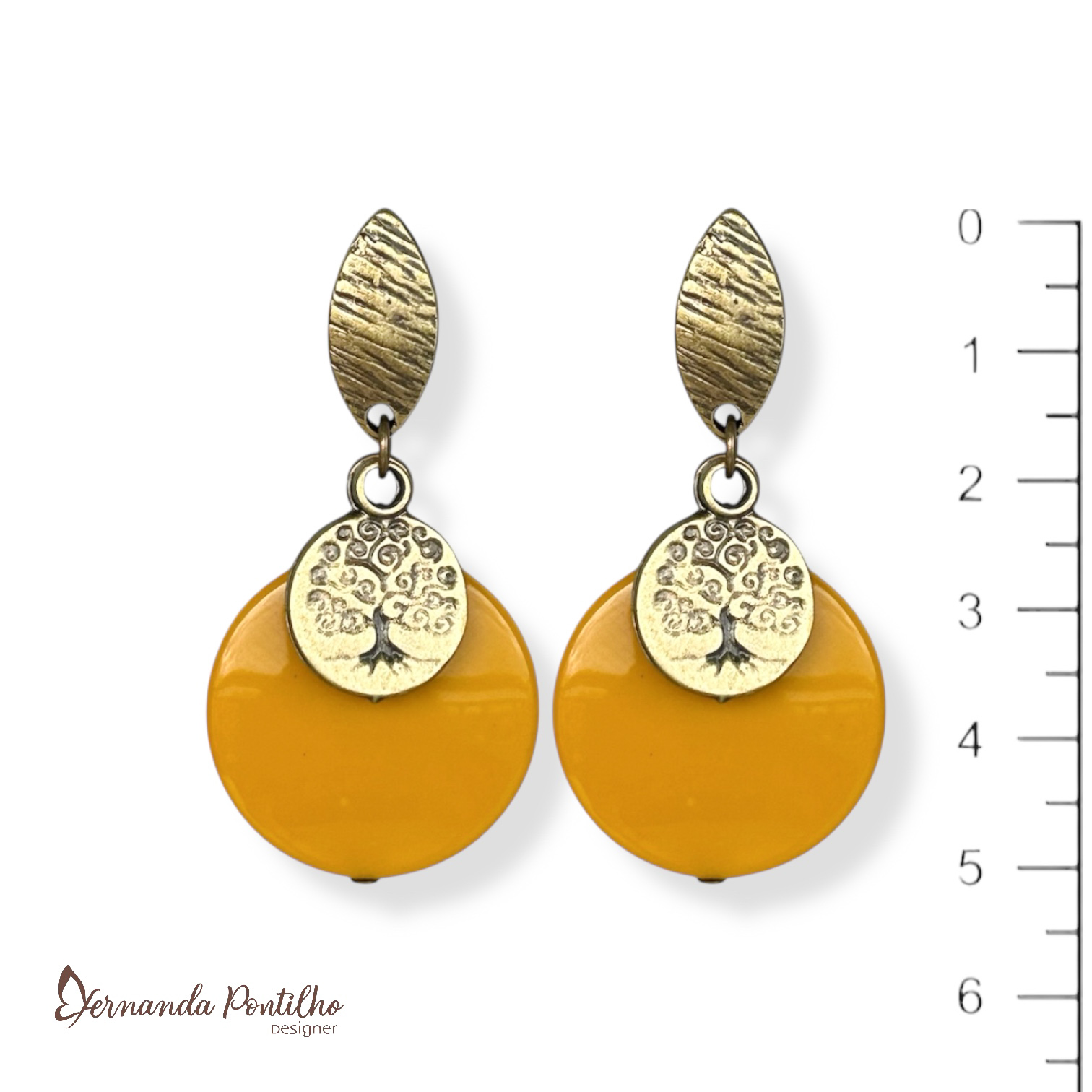 Brinco chapa de resina e moeda árvore da vida - amarelo 12747