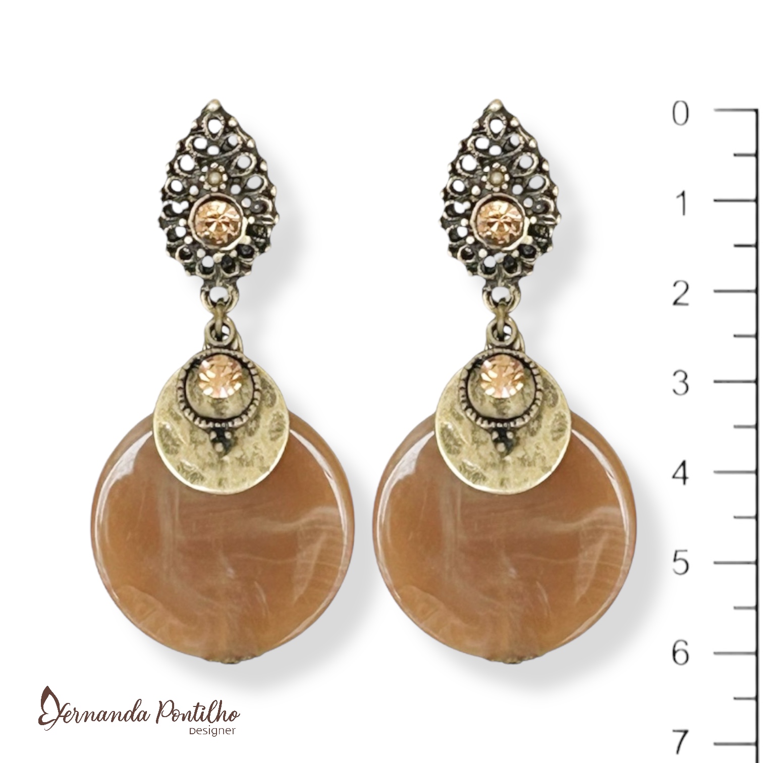12688 Brinco chapa de resina e pto de luz - marrom e dourado