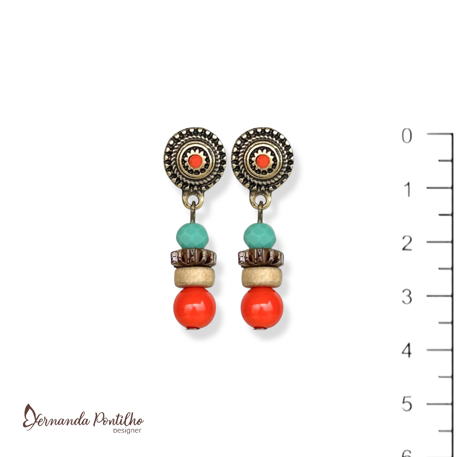 Brinco cristal e contas - coral e turquesa 12771