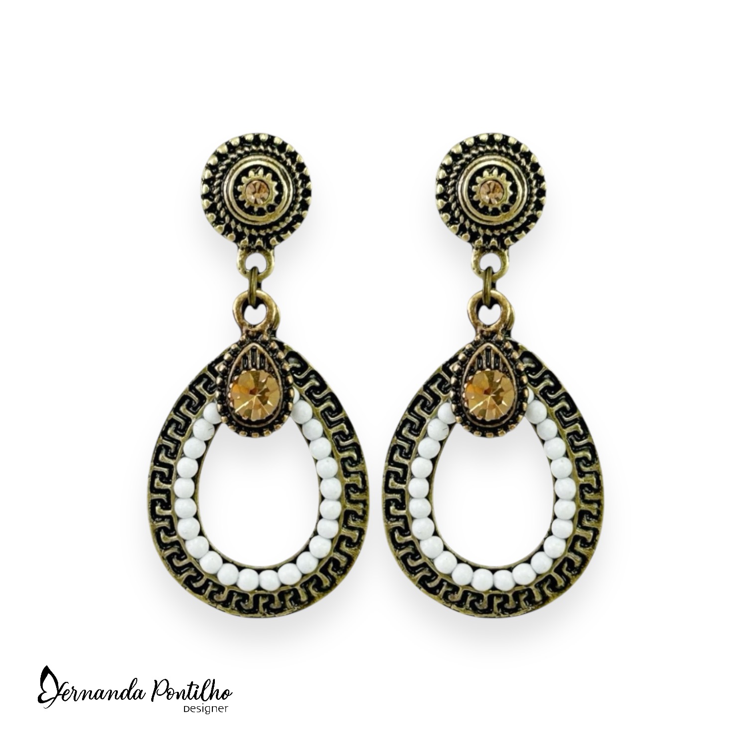 12406 Brinco gota e pto de luz - branco e dourado