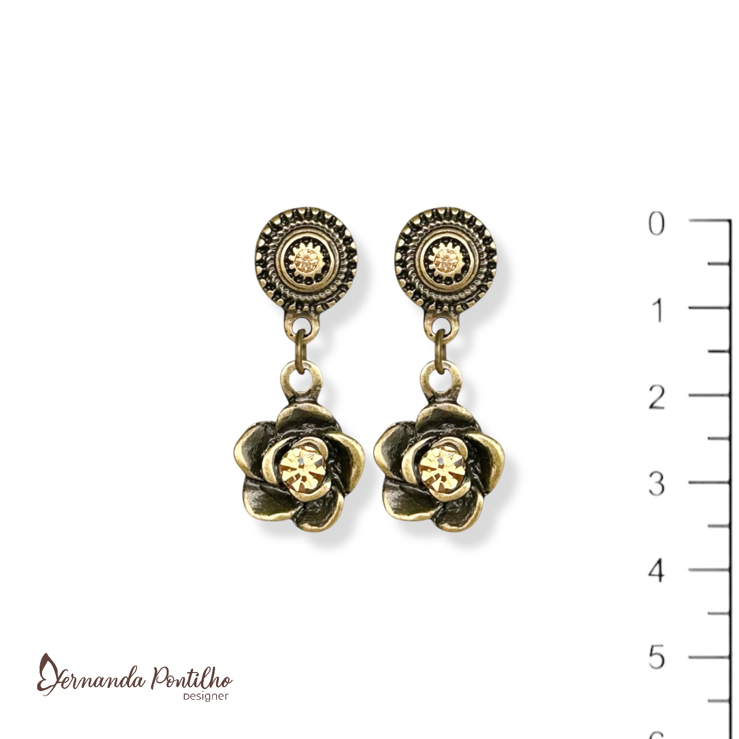 Brinco rosinha c/ strass dourado 12417