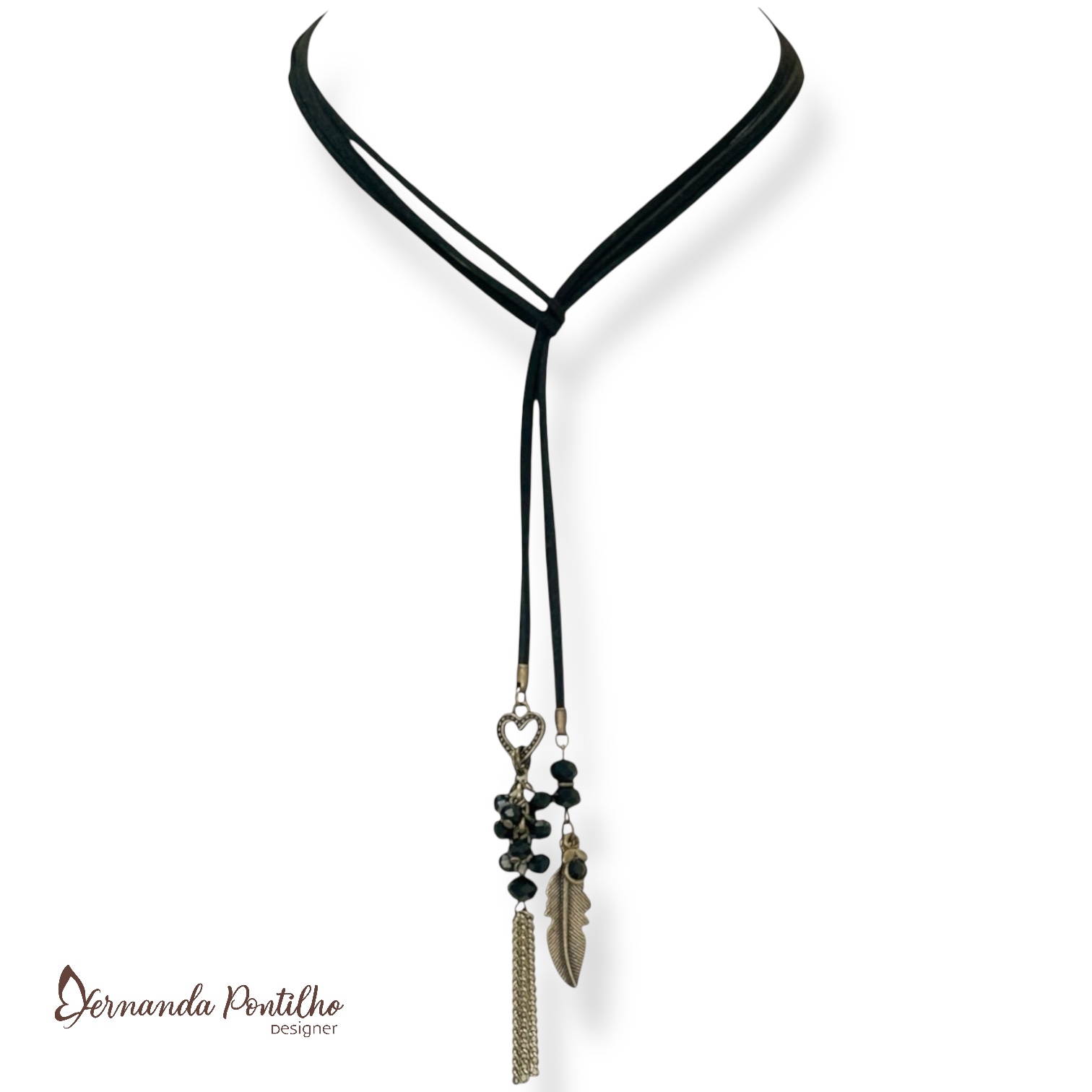 12045 COLAR DE AMARRAÇÃO C/ CODÃO, CRISTAIS E BERLOQUES - PRETO