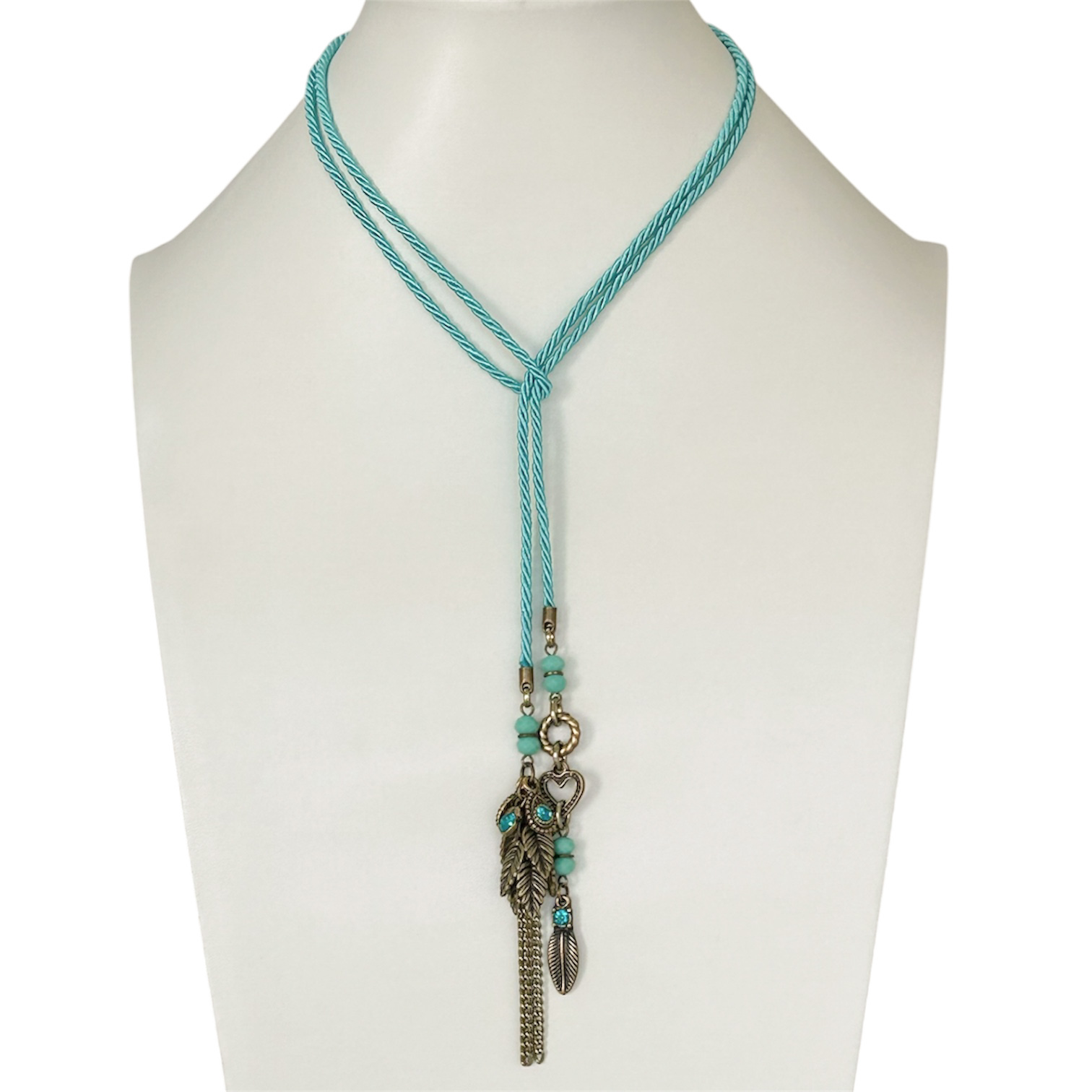 Colar de amarração versátil c/ cordão e berloques - turquesa 12838