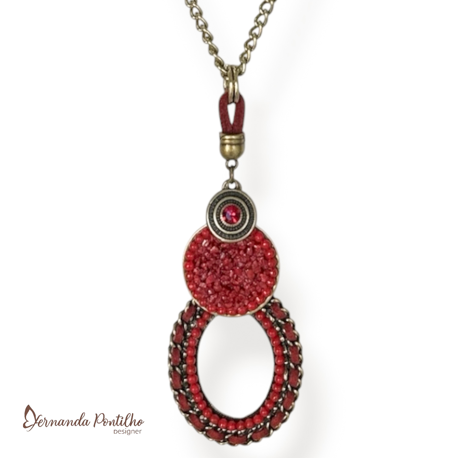 12665 Colar longo c/ pingentes customizados c/ bolinha, cascalho, cordão e strass - vermelho