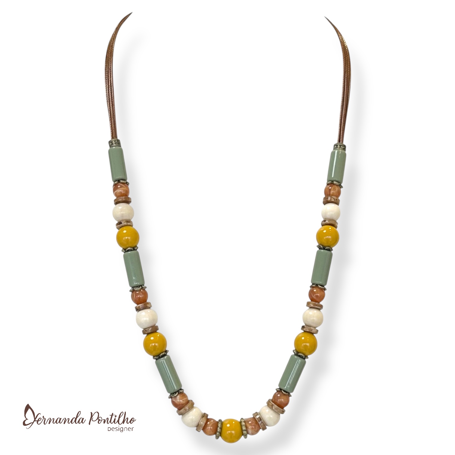Colar médio c/ cordão, bolas e entremeios - colorido 12741