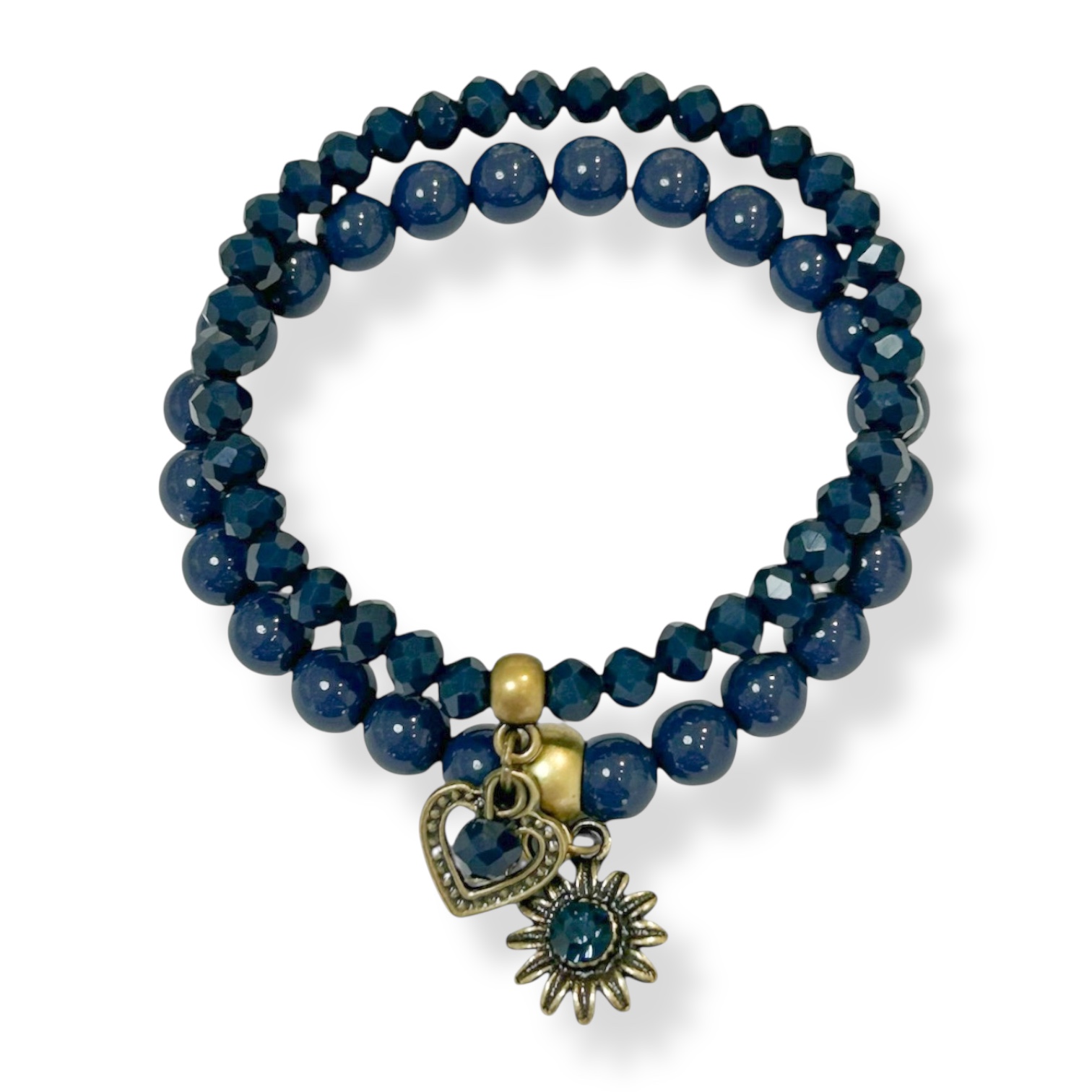 KIT C/ 2 PULSEIRAS DE CRISTAIS, BOLAS E BERLOQUES C/ STRASS - AZUL MARINHO 12603