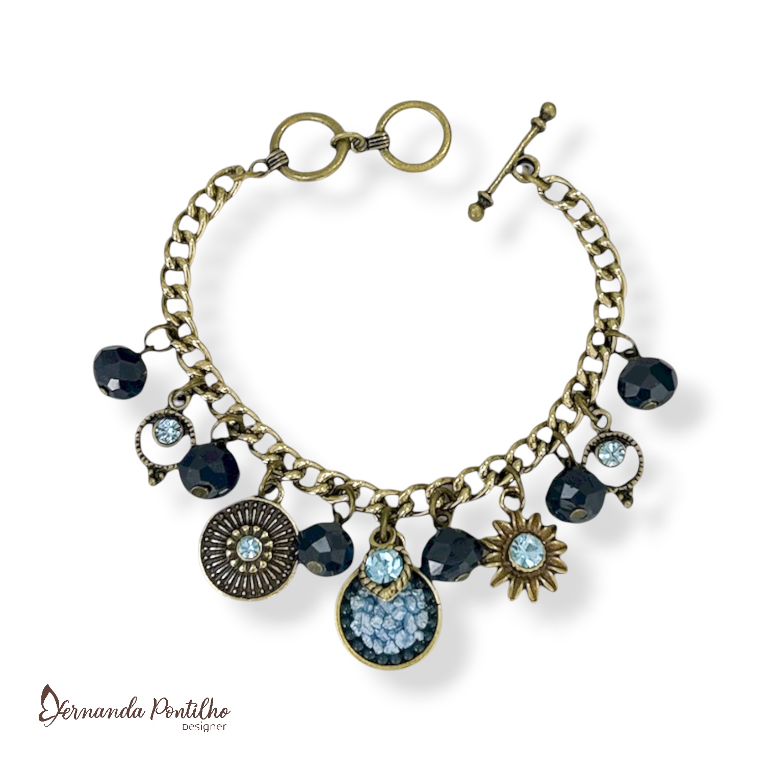 12723 Pulseira c/ cristais e berloques - azul marinho e aquamarine